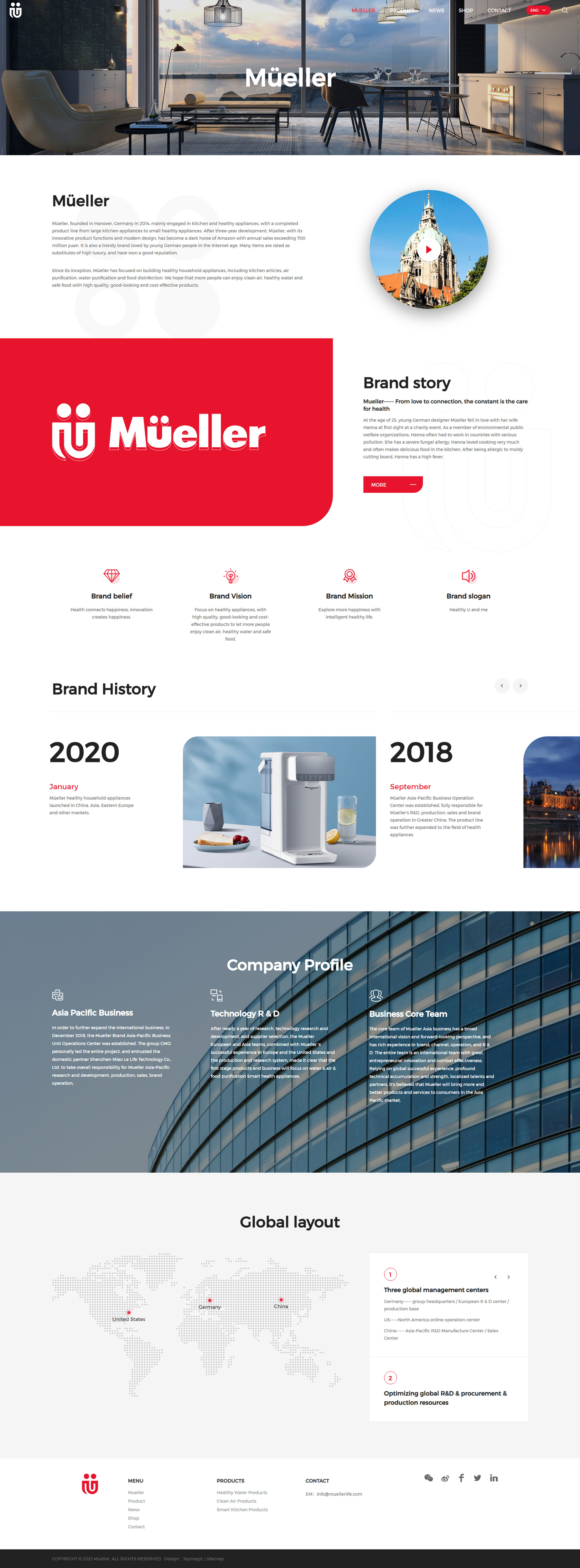 MüEller外貿網站建設由廣州卓越邁創完成,公司成立于2014年,成立于德國漢諾威,主要經營廚房和健康電器,產品線從大型廚房用具到小型健康電器。經過三年的發展,MüEller憑借其創新的產品功能和現代化的設計,已成為亞馬遜的黑馬,年銷售額超過7億元。在互聯網時代,它也是一個深受德國年輕人喜愛的時尚品牌。許多商品被評為高級奢侈品的替代品,并贏得了良好的聲譽。