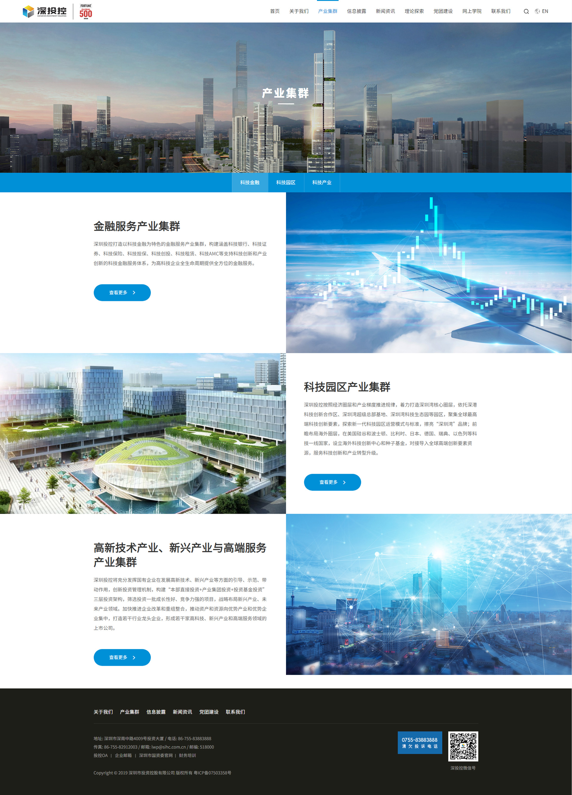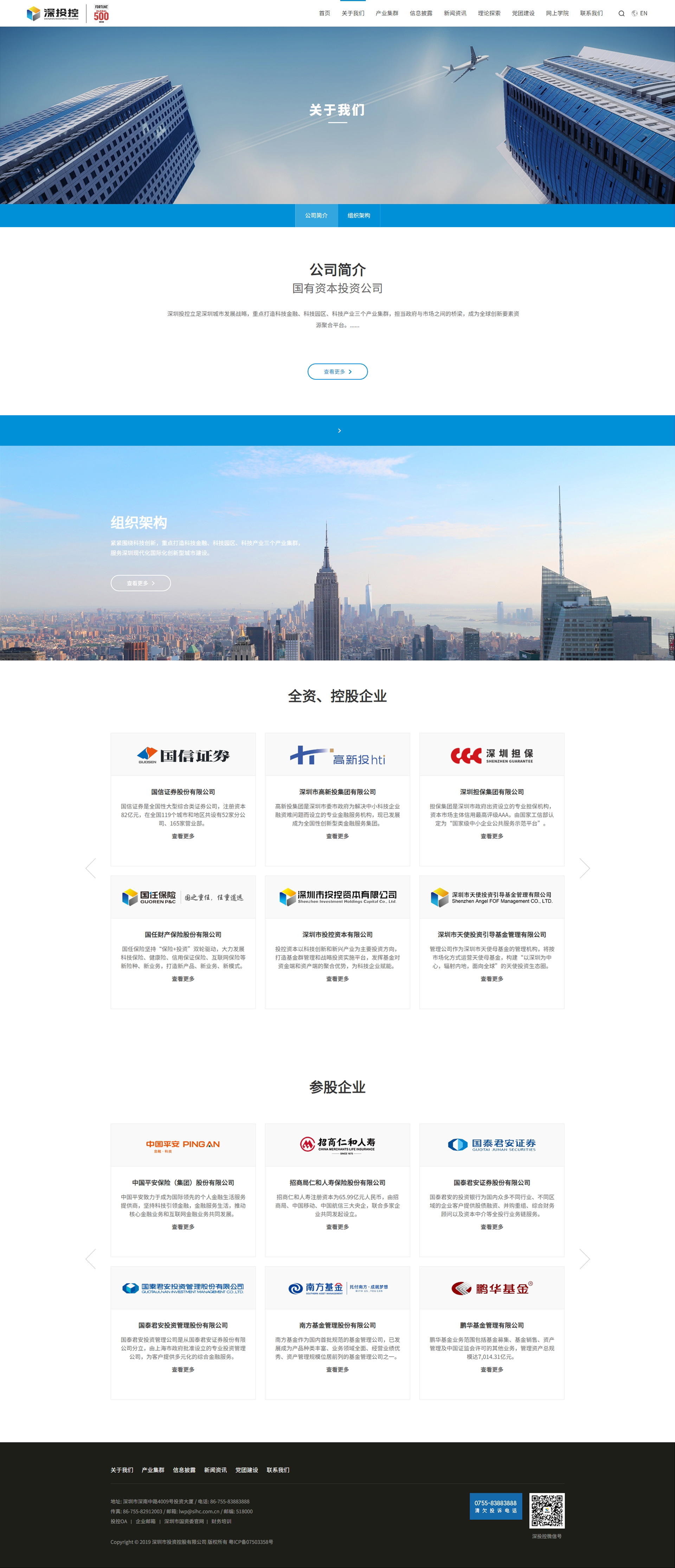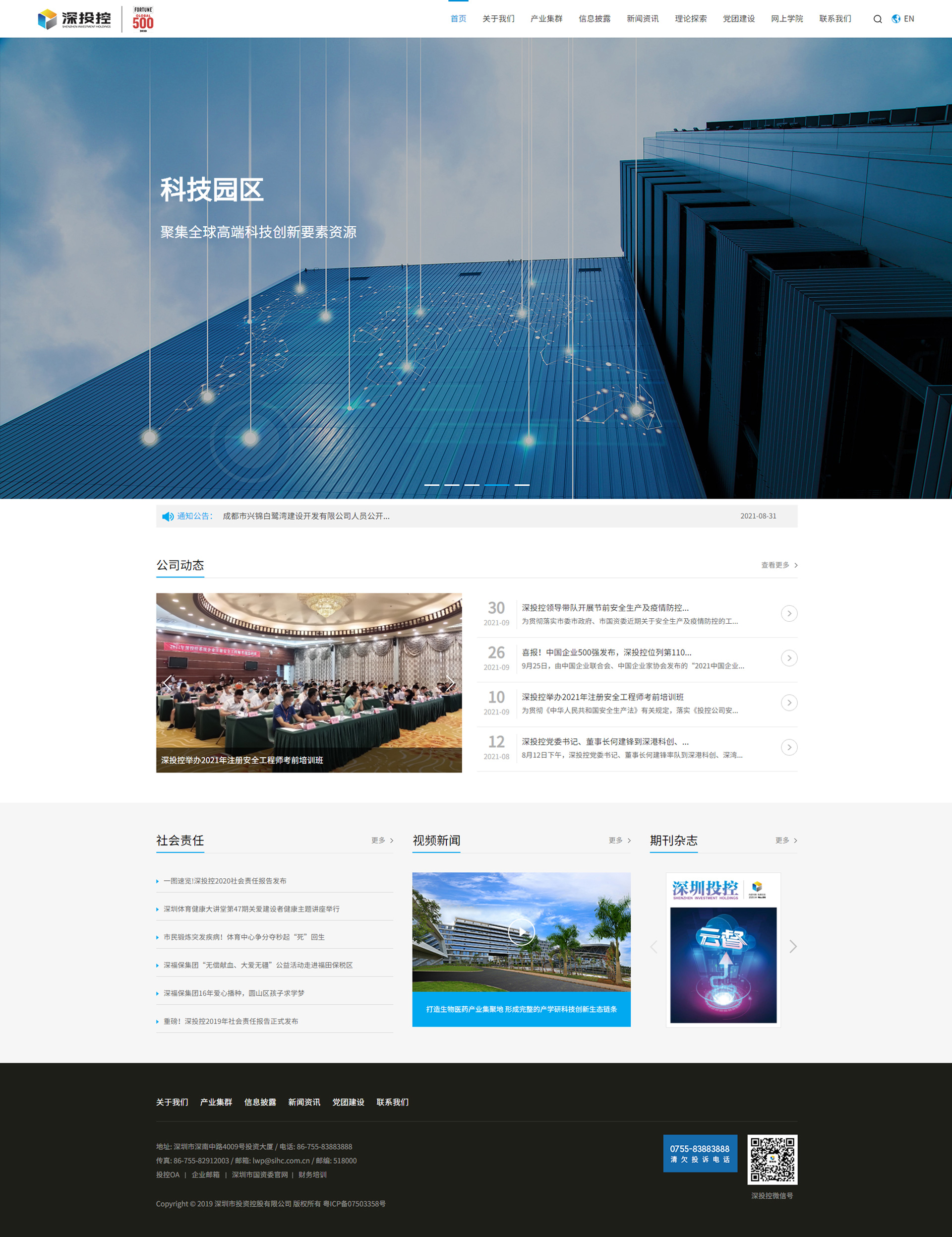 深圳市投資控股有限公司(簡稱“深投控”)成立于2004年,是以科技金融、科技園區、科技產業為主業的國有資本投資公司。截至2020年底,公司總資產8454億元、凈資產3528億元,全年實現營業收入2149億元、利潤總額279億元,四項指標分別較“十三五”期初的2016年增長111%、102%、402%、85%。2020年成為深圳市屬國企首家世界500強企業,2021年世界500強排名396位,較上年上升46位。