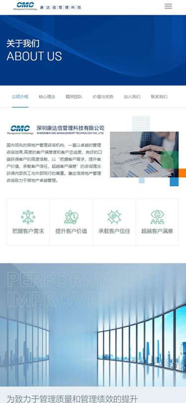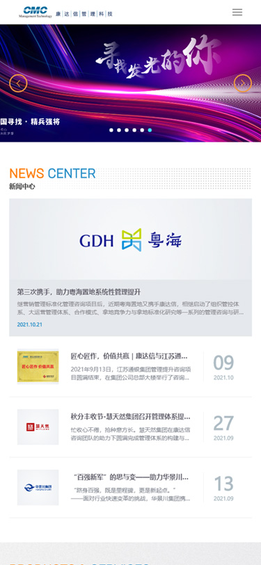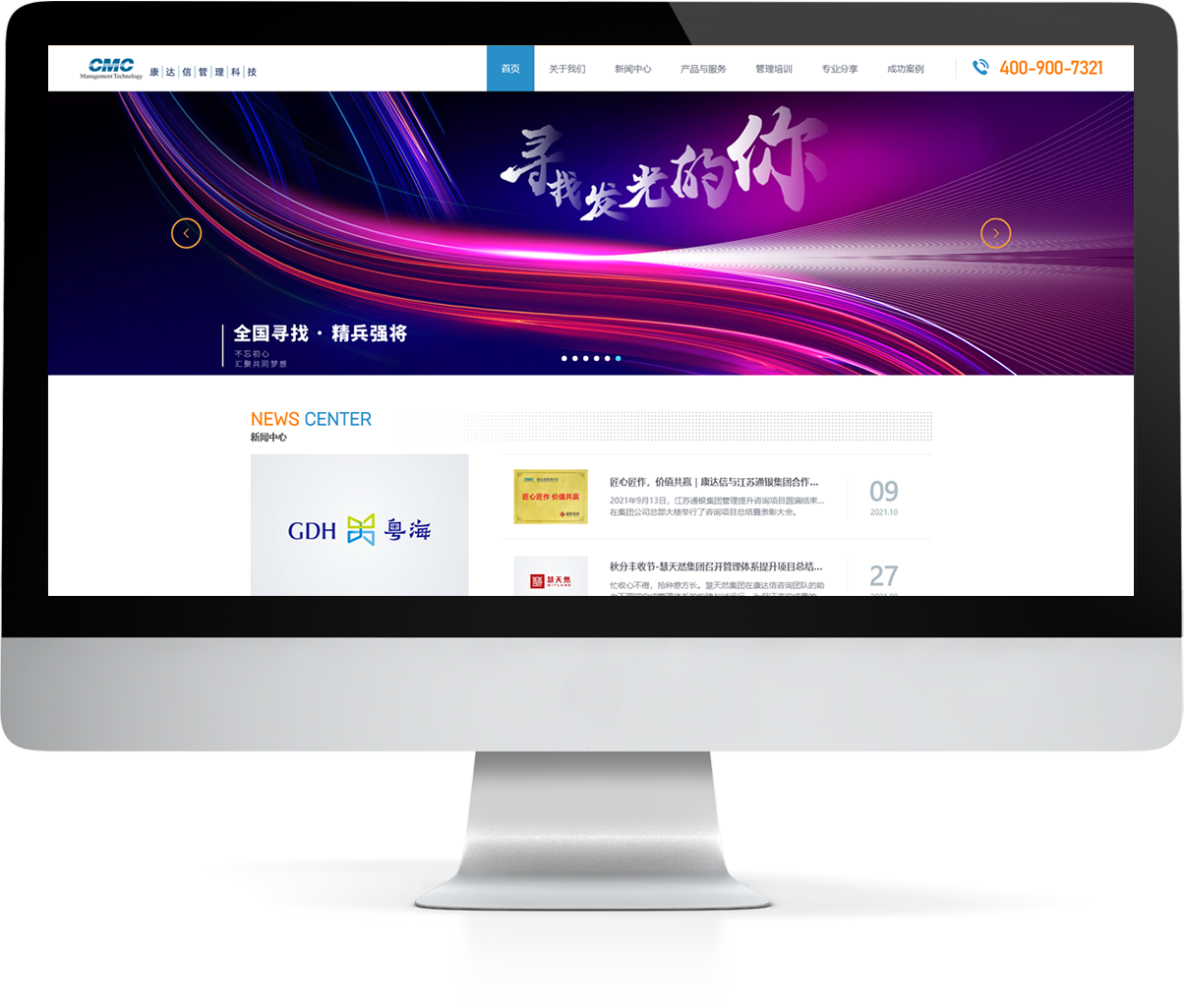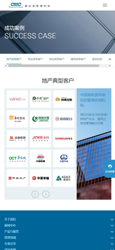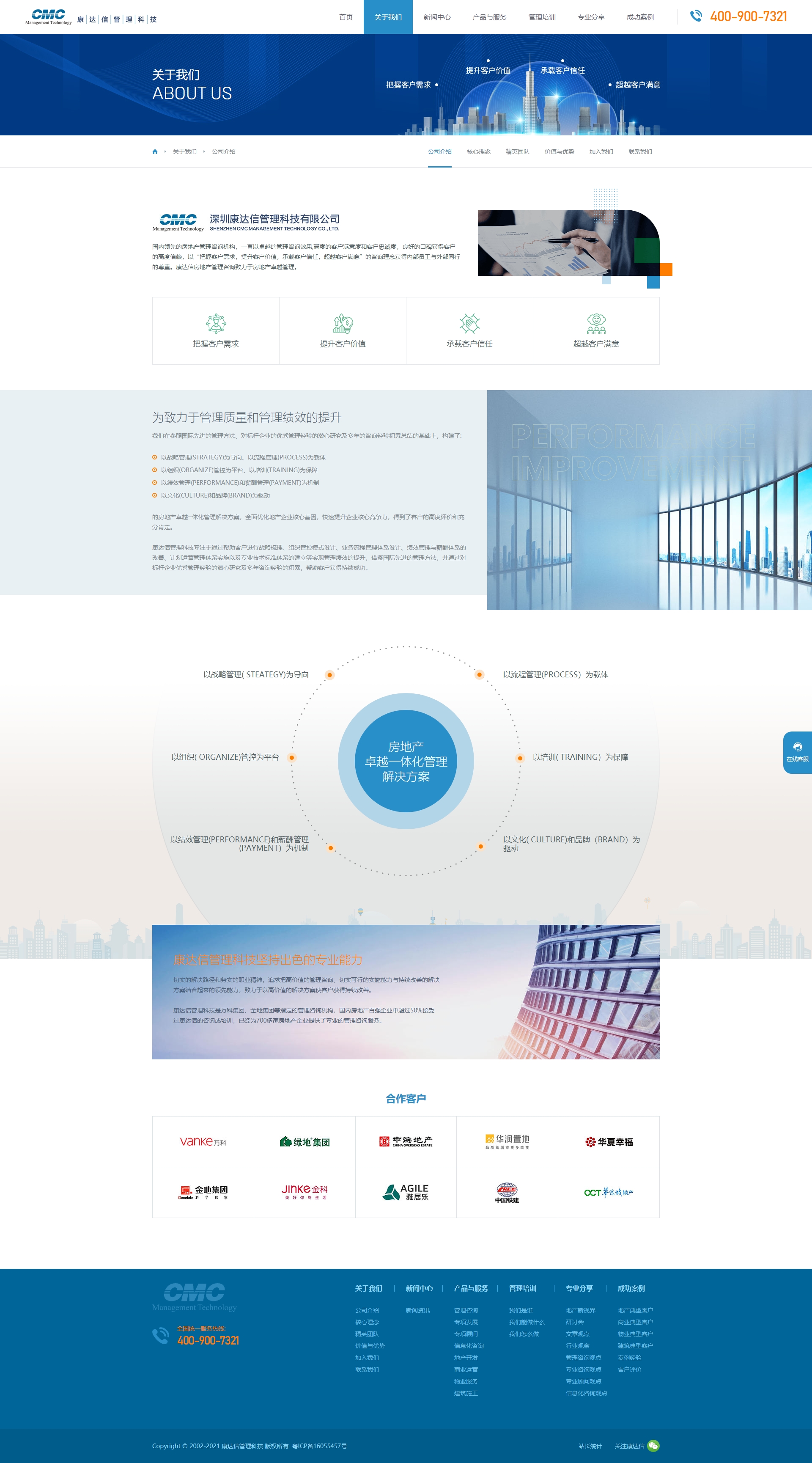 廣州卓越邁創公司把握康達信需求,定制統一的WEB形象,色彩搭配白橙藍色,展現其網站專業性,提升康達信公司的市場核心競爭力。
