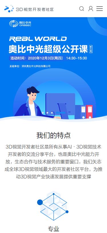 “3D視覺開發者社區”是深圳奧比中光科技有限公司面向開發者推出的開放平臺,旨在將國際領先的3D視覺技術開放給開發者;平臺以奧比中光3D視覺RGBD模組和開發板等硬件為基礎,同時開放奧比中光自研Astra SDK、深度算法、應用算法等資源,還提供信息檢索、資源獲取、交流分享的專業技術與服務支持, 拓展更多應用、推動3D視覺行業共同發展,踐行奧比中光“讓所有終端都能看懂世界”的使命。