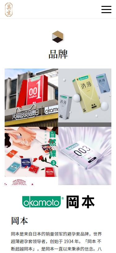 岡本株式會(huì)社創(chuàng)立于昭和九年(1934年),是世界上最早開始生產(chǎn)安全套的廠家之一。80年來,岡本一直秉持“讓本性,更人性”的品牌理念,尊重本性,追求極致人性,不斷超越自我,從岡本0.03到岡本0.01,岡本始終追求為用戶提供無佩戴感的優(yōu)異體驗(yàn)。1949年6月,岡本株式會(huì)社在日本掛牌上市,一直居于日本股市的A類板塊。經(jīng)過70余年的不懈努力,現(xiàn)今的岡本株式會(huì)社已發(fā)展成為日本最大的橡膠乳膠制品生產(chǎn)商之一。