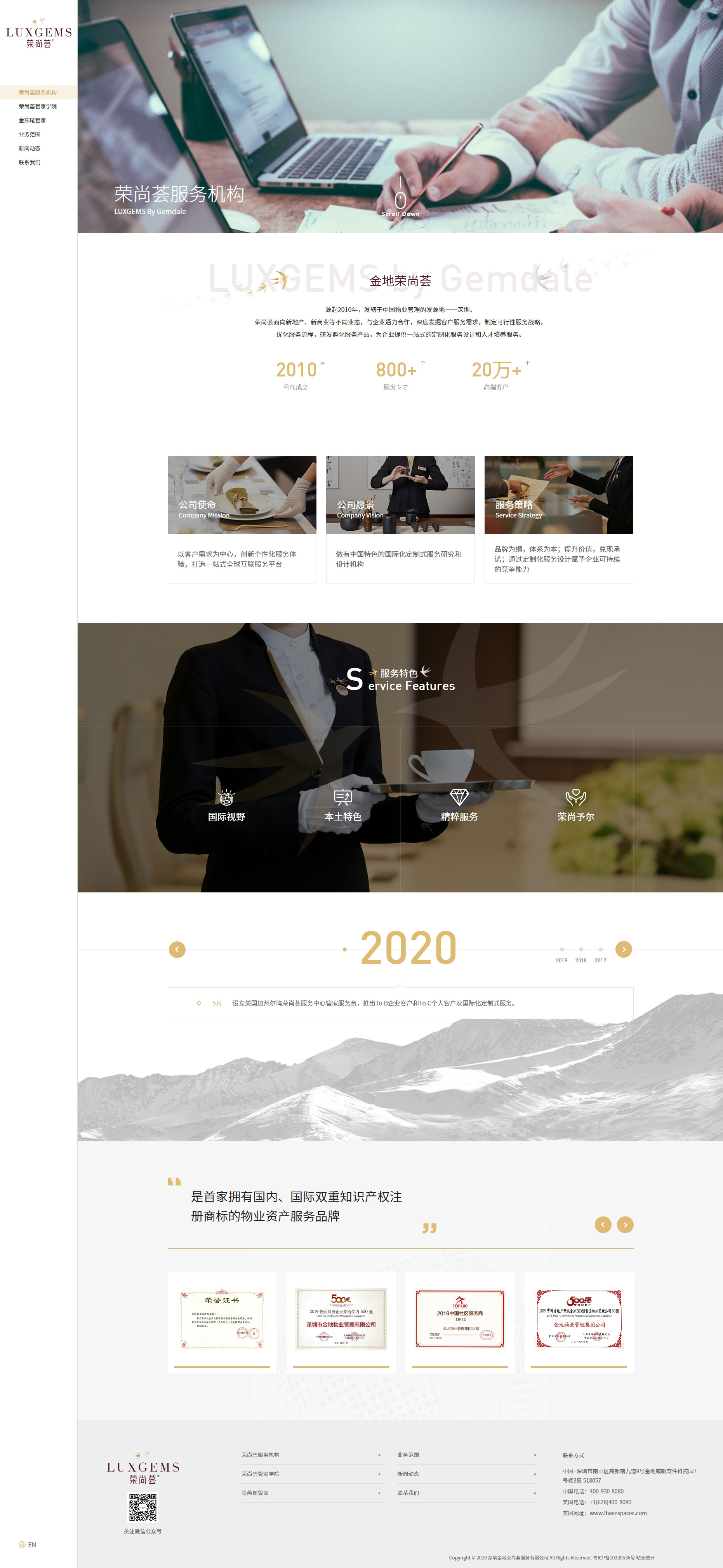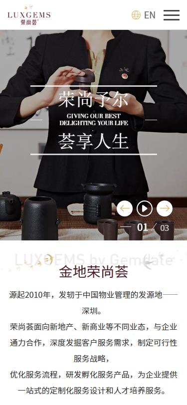 深圳金地榮尚薈服務有限公司,成立于2015年,是金地集團旗下高端物業服務和資產運營管理的專營公司。是首家擁有國內、國際雙重知識產權注冊商標的物業資產服務品牌。提升品質,傳遞美好,是金地榮尚薈的使命;愿景做最受客戶歡迎的高端服務企業;服務理念:量身定制,超越期待,賓至如歸,首善之地(鄭重說明,該項目為我司案例)。