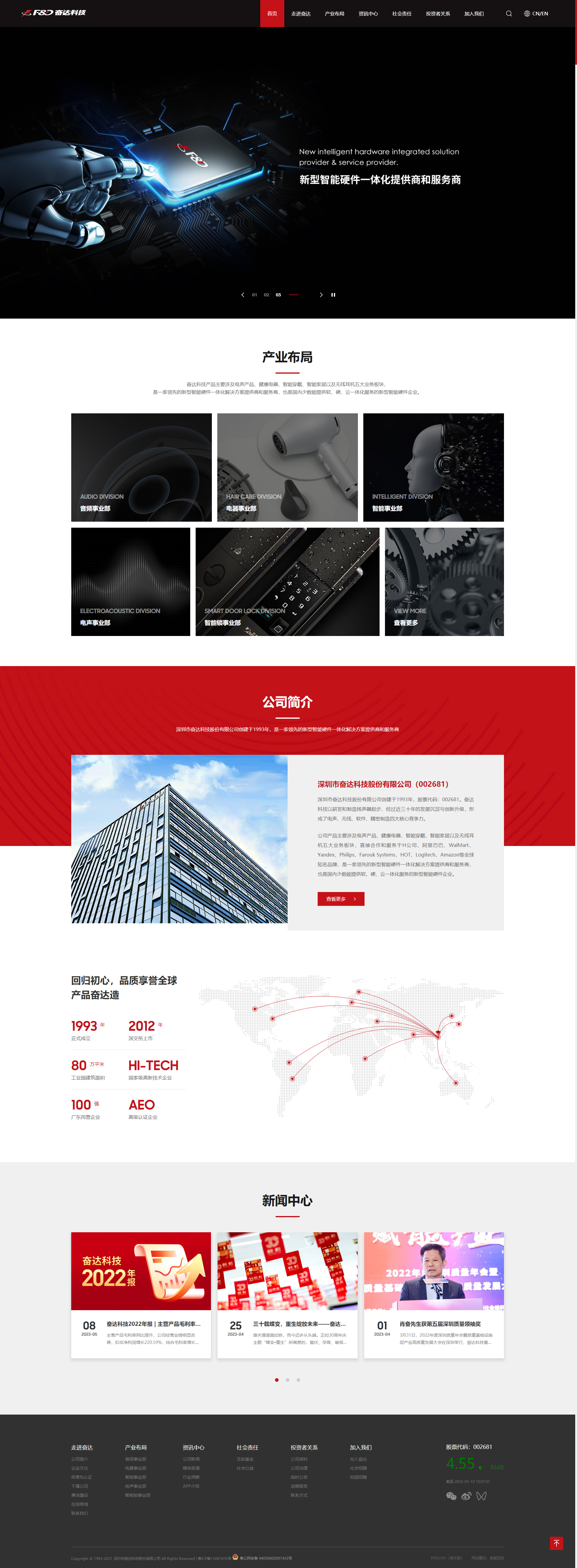 深圳市奮達科技股份有限公司創建于1993年,股票代碼:002681。奮達科技以研發和制造揚聲器起步,經過近三十年的發展沉淀與創新升級,形成了電聲、無線、軟件、精密制造四大核心競爭力。