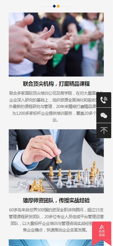 邁創網絡根據企業所做的行業性質,避免在一個頁面上有太多的色彩,采用藍白色調,活潑但不失穩重、顏色柔和但不亂,既高檔又讓人放心。